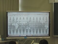 電子黒板を活用し、球体を平面に展開する様子を視覚的に解説した場面では、多くの生徒が驚きとともに理解を深めている様子が印象的でした。身近な疑問から真理を探究する、素晴らしい学習のスタートを切っています。
