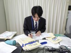 夏休みに、美術部とともに作陶した器の仕上げをしています